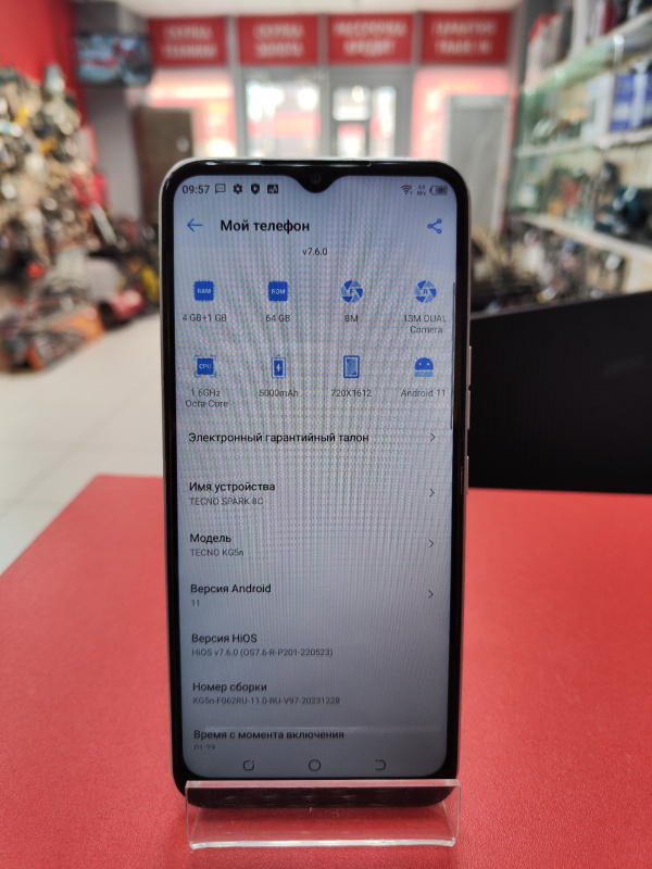 Мобильный телефон Tecno Spark 8c (64 ГБ, Серый)